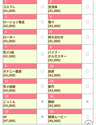 | 生フェラ | ○ |
